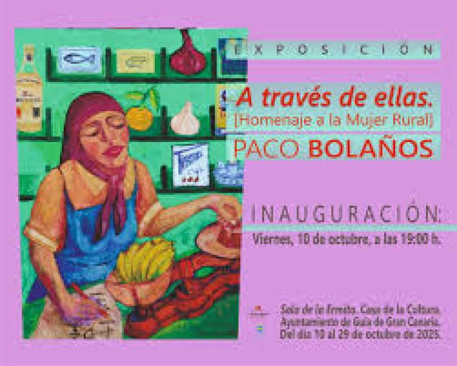 Con motivo del Día de la Mujer Rural, que se celebra el 15 de octubre, el artista Paco Bolaños trae al municipio de Guía la exposición “A través de ellas”, una muestra que refleja una idea plástica de la mujer rural que abarca lo antropológico, lo histórico y, sobre todo, lo femenino. La inauguración tendrá lugar este viernes día 10, en la Casa de la Cultura, a las 19:00 horas, y permanecerá abierta hasta el 29 de este mes.