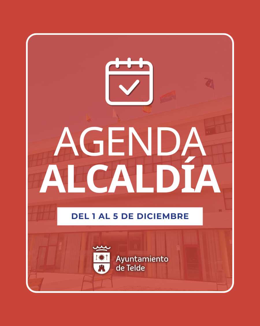 Telde, a 1 de diciembre de 2025. A continuación, acorde con lo recogido en la Ley 19/2013, de Transparencia, Acceso a la Información Pública y Buen Gobierno, se detalla la agenda semanal del alcalde de Telde, Juan Antonio Peña, del lunes 1 al viernes 5 de diciembre de 2025.