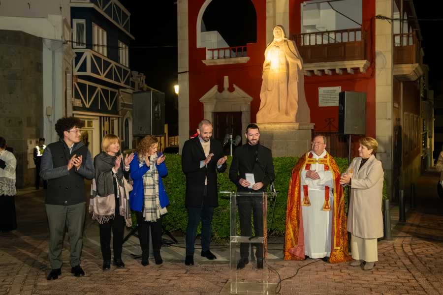 Haciendo alusión a la abundante lluvia que la isla ha recibido en los últimos meses, al punto de hacer rebosar presas y barrancos, el primer teniente de alcalde, Julio Mateo Castillo, recordó el simbolismo de una plegaria que, aunque este año parezca innecesaria, se realiza con la mirada puesta en el futuro, “para que siga lloviendo en los años sucesivos, que sabemos que falta le hace a nuestra tierra esa agua”.