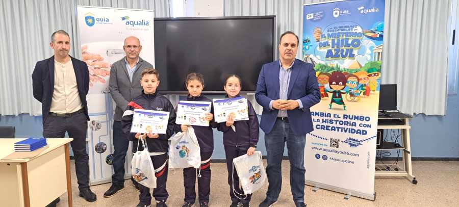 El CEIP Nicolás Aguiar acogió esta mañana el acto de entrega de premios del Concurso Digital Educativo Infantil de Aqualia, convocado bajo el lema “Misión RegenerACCIÓN”, en el que la alumna Gurene Díaz ha resultado ganadora nacional entre más de 9.300 participantes de toda España, siendo además una de las diez ganadoras a nivel internacional de este certamen convocado a la vez en países como Colombia, Italia y República Checa, entre otros. Además, los alumnos Mateo Quintana y Lucía García, del mismo colegio, han quedado finalistas, ocupando un lugar destacado entre los 250 trabajos seleccionados a nivel internacional, un logro que pone en valor el esfuerzo del alumnado y el acompañamiento del profesorado de este centro escolar.