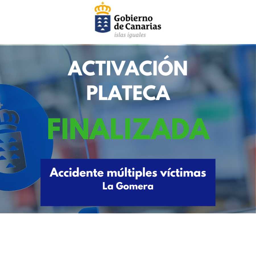El Gobierno de Canarias, a través de la Dirección General de Emergencias, finaliza la situación de alerta por accidente de múltiples víctimas en La Gomera a partir de las 20:00 horas de hoy, viernes 10 de abril. Esta decisión se adopta en base a la situación acaecida y en aplicación del Plan Territorial de Emergencia de Protección Civil de la Comunidad Autónoma de Canarias (PLATECA).