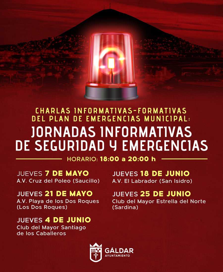 El Ayuntamiento de Gáldar pondrá en marcha a partir del próximo mes de mayo un ciclo de jornadas informativas y formativas sobre seguridad y emergencias con el objetivo de acercar a la ciudadanía el contenido y funcionamiento del Plan de Emergencias Municipal (PEMU).