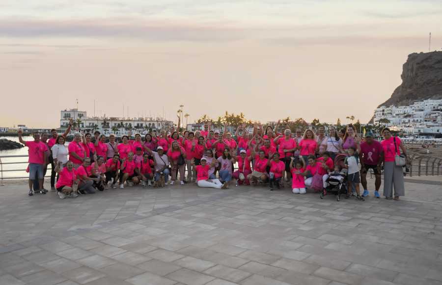 La marcha, que dio comienzo pasadas las 18:30 horas desde el Campo de Fútbol de Mogán, tiñó de rosa las calles del barrio en un recorrido lleno de apoyo y esperanza en el que los y las asistentes vistieron prendas de ese color y el lazo que simboliza la lucha contra el cáncer de mama.