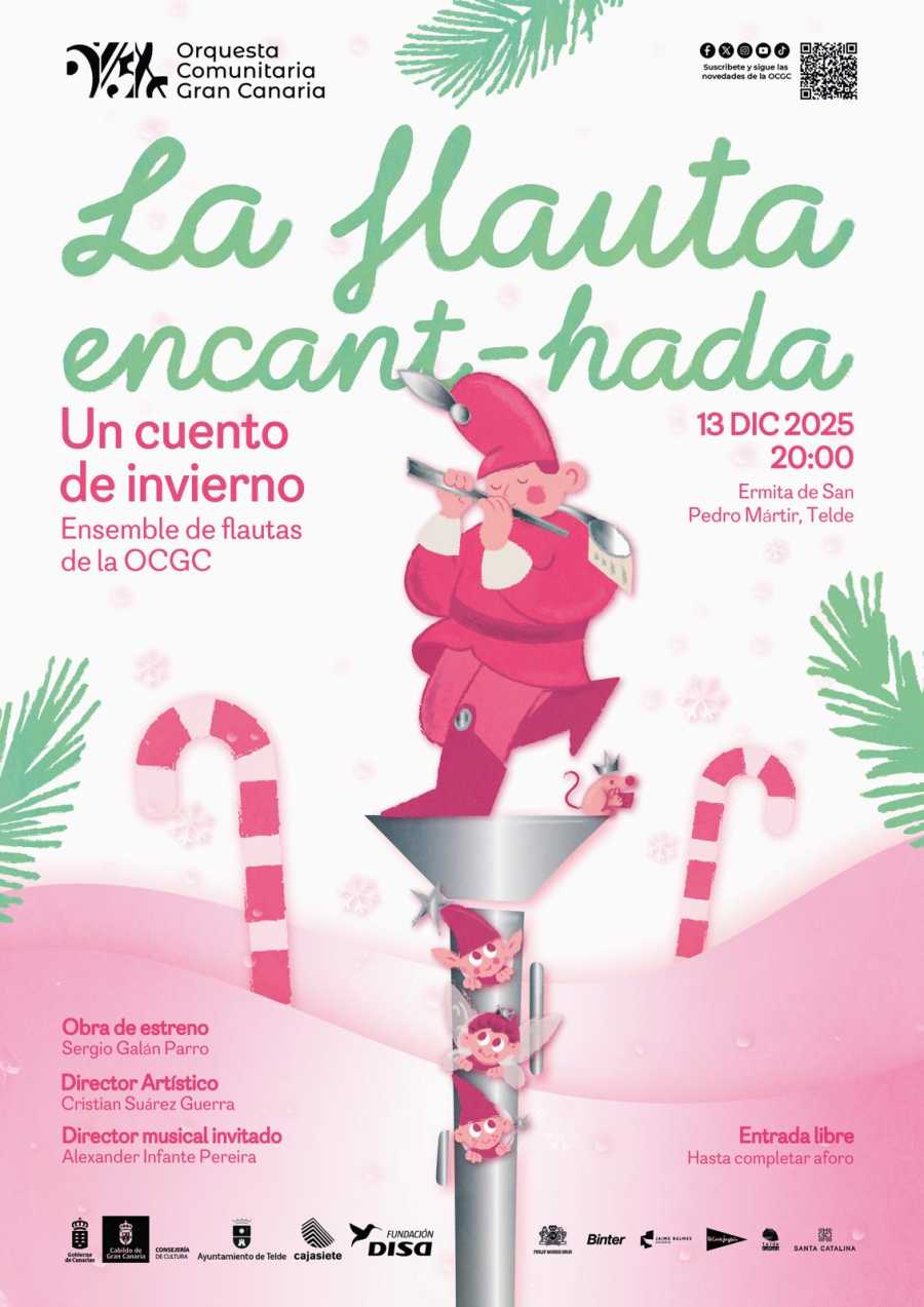 El Ensemble de Flautas de la Orquesta de Cámara de Gran Canaria (OCGC) invita al público a sumergirse en “La flauta encant-hada”, un concierto extraordinario que llenará de ritmo, emoción y fantasía la Ermita de San Pedro Mártir el próximo sábado 13 de diciembre a las 20:00 horas.
