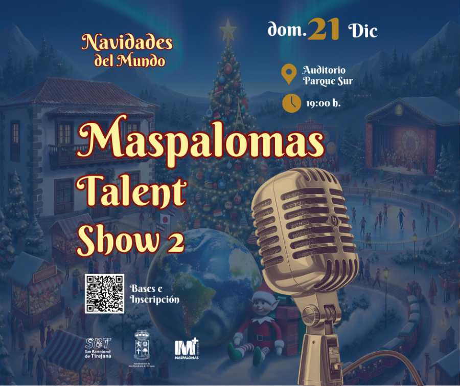 La Concejalía de Cultura del Ayuntamiento de San Bartolomé de Tirajana convoca la segunda edición del Maspalomas Talent Show que se celebrará en el Parque Urbano del Sur el próximo domingo 21 de diciembre, con el propósito de promover el talento de los participantes en disciplinas artísticas como la música, danza, acrobacias, magia y humor entre otras.