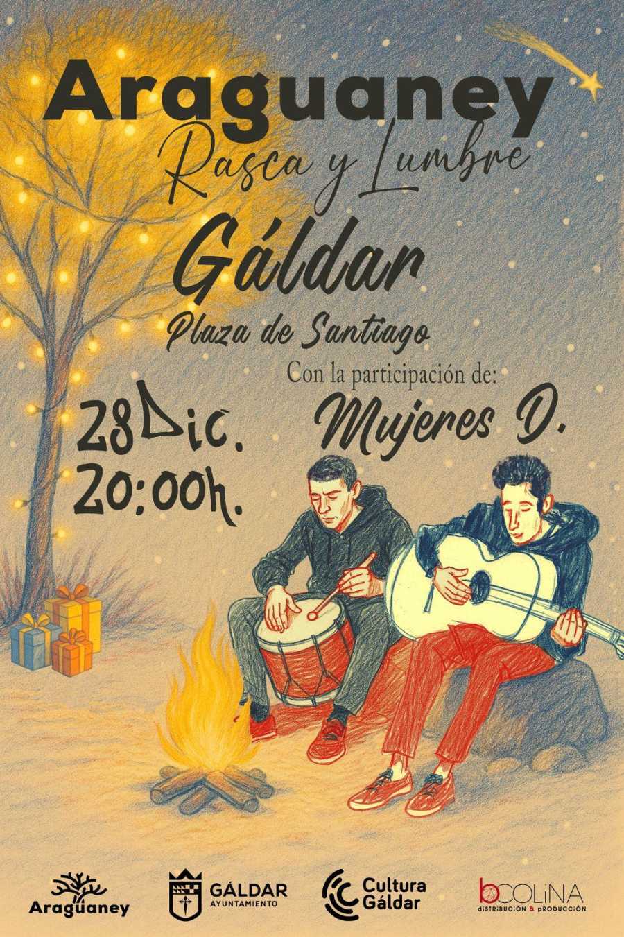 El grupo de música popular Araguaney se sube al escenario galdense para avivar el espíritu navideño con su concierto “Rasca y Lumbre”. El evento se celebra el sábado 28 de diciembre a las 20:00 horas en la Plaza de Santiago y se suma al nutrido programa navideño del municipio, organizado por la Concejalía de Cultura que dirige Julio Mateo Castillo.