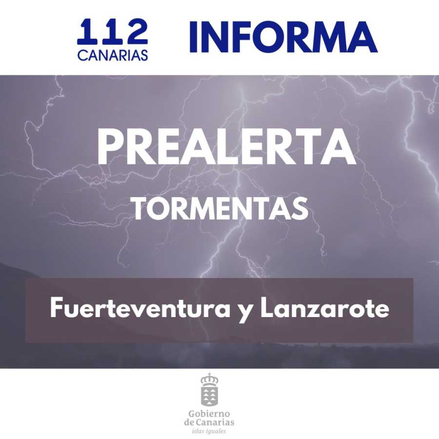 El Gobierno de Canarias, a través de la Dirección General de Emergencias, declara la situación de prealerta por tormentas Fuerteventura y Lanzarote a partir de las 12:00 horas de hoy, jueves 26 de febrero. Esta decisión se toma teniendo en cuenta la información facilitada por la Agencia Estatal de Meteorología y otras fuentes disponibles, y en aplicación del Plan Específico de Emergencias de Canarias por Riesgos de Fenómenos Meteorológicos Adversos (PEFMA).
