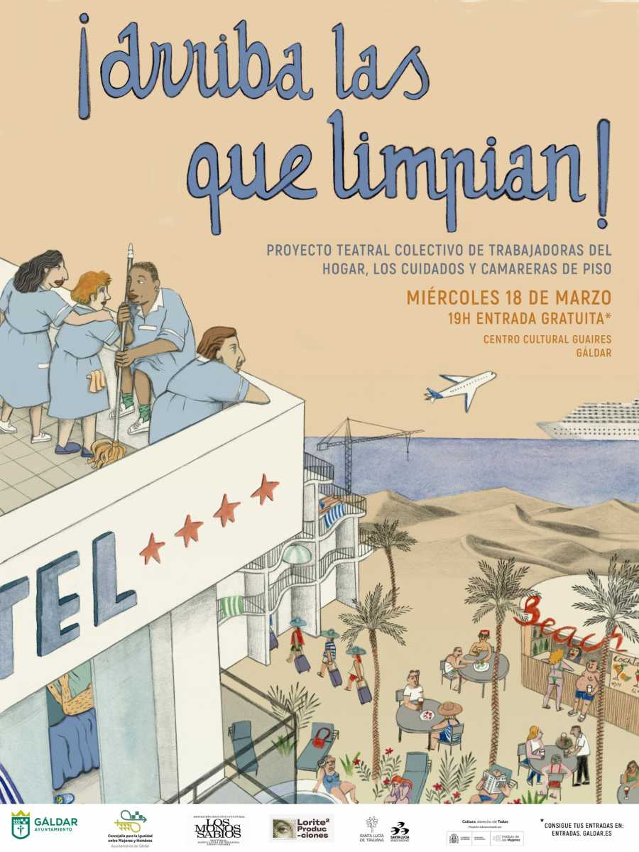 ‘¡Arriba las que limpian!’ es el título del proyecto teatral colectivo protagonizado por quince camareras de piso que comparten, con humor corrosivo, crítico y en primera persona, la realidad oculta detrás de la industria turística en Canarias y que será presentado el miércoles 18 de marzo, el Centro Cultural Guaires a las 19:00 horas.