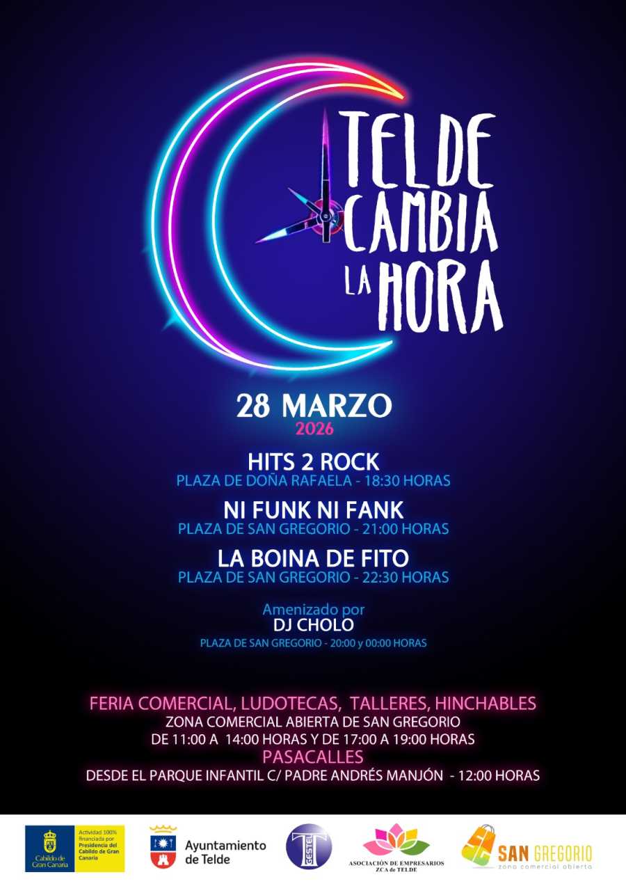Telde, a 18 de marzo de 2026. El municipio de Telde se prepara para vivir una jornada llena de dinamismo, música y actividades con motivo de la celebración de Telde cambia la hora, una iniciativa que regresa a la ciudad el próximo 28 de marzo a la Zona Comercial Abierta de San Gregorio.